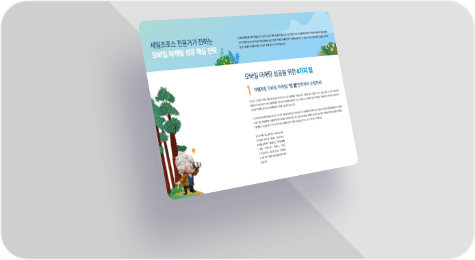 세일즈포스�전문가가�전하는 모바일�마케팅을�위한�전제조건과�체크리스트에�대해�소개해드렸습니다. 본�장에선�고객�디지털화를�선점하기�위해�마케터와�개발자들이 반드시�알고�있어야�할�핵심�모바일�마케팅�성공�전략은�무엇인지�세일즈포스�마케팅�클라우드의�전문가이신�오재균�상무, 김영순�상무와 모바일�마케팅�성공�핵심�전략 함께�모바일�마케팅에�대해�보다�심도�있게�알아보도록�하겠습니다. 모바일�마케팅�성공을�위한 �가지�팁 1차별화된�모바일�마케팅! ʻ인�앱’전략부터�수립하라 모바일�마케팅은�마케팅�채널이�모바일�디바이스인�모든�활동들을�의미합니다. 모바일�웹도�있을�수�있고�앱도�있을�수�있죠. 딜리버리 애플리케이션과�같은�서비스�플랫폼들이�모바일�마케팅에�집중하고�있고, 쿠팡이나�마켓컬리�등의�리테일도�앱을�통해�이커머스 (M커머스) 시장을�개척하며�모바일�마케팅에�많은�노력을�기울이고�있습니다. 기존�마케팅이�대부분�웹을�기반으로�했다면�모바일�마케팅은�모바일�환경, 즉�앱을�통해�이루어질�수�있습니다. 특정�플랫폼을�통해�메시지를 보내는�것은�동일하지만, 엄밀히�말해�이메일이나�메신저�등은�앱�기반이�아니라는�분명한�차이가�있습니다. 모바일�마케팅은�앱을�사용하는 사람들을�타겟으로�앱�내에서의�액션이나�구동을�위한�액션을�타겟으로�한다는�것이�가장�큰�차이점이죠. SMS나�메신저도�큰�범주�안에서�모바일 마케팅에�속하기는�하지만, 세일즈포스 마케팅�클라우드�팀에서는�모바일�앱에 기반한� 아웃바운드� 메시지, 그리고 이메일로부터�모바일�앱으로�연결되는 시나리오의�차별화�등을�새롭게�추구하고 있습니다.