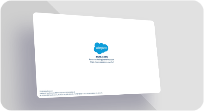 세일즈포스 코리아 korea-marketing@salesforce.com https://www.salesforce.com/kr/ 주식회사 Salesforce.com Salesforce는 Salesforce.com,.INC.의 미국 및 기타 국가의 등록 상표입니다. 또, 기타 서비스명도 Salesforce.com,.INC.의 상표 또는, 등록 상표입니다. 기타 각종 제품명은 각 기업의 제품 명칭, 상표 또는, 등록 상표입니다.